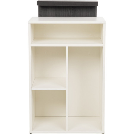 Moderner weißer Empfangstresen mit dunklem Holzaufsatz, minimalistisches Design für Haarsalons oder Praxisempfang - Rückseite
