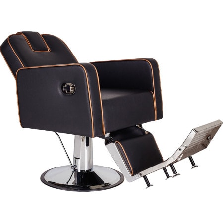 Der breite, sehr komfortable Sitz mit weichem Bezug ist mit einer regulierbaren Kopfstütze versehen, die es Ihren Kunden ermöglicht, sich beim Rasieren zu entspannen.