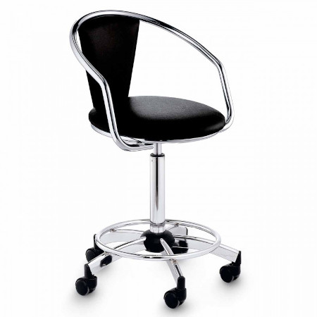 Ein bequemer Stuhl mit gepolstertem Sitz und gepolsterter Rückenlehne, die mit leicht zu reinigendem und desinfizierendem Kunstleder bezogen sind. Zusätzlichen Komfort bieten die Armlehnen aus Metall. Der Sitz ist mit einer Gasdruckfeder höhenverstellbar, das Untergestell mit Rädern sorgt für Bewegungsfreiheit. Die Fußstütze ermöglicht es, während der Arbeitszeit eine korrekte Position einzunehmen, ohne den Rücken zu belasten. Der Beauty Chair Kosmetikstuhl ist ideal für den Manikürtisch.