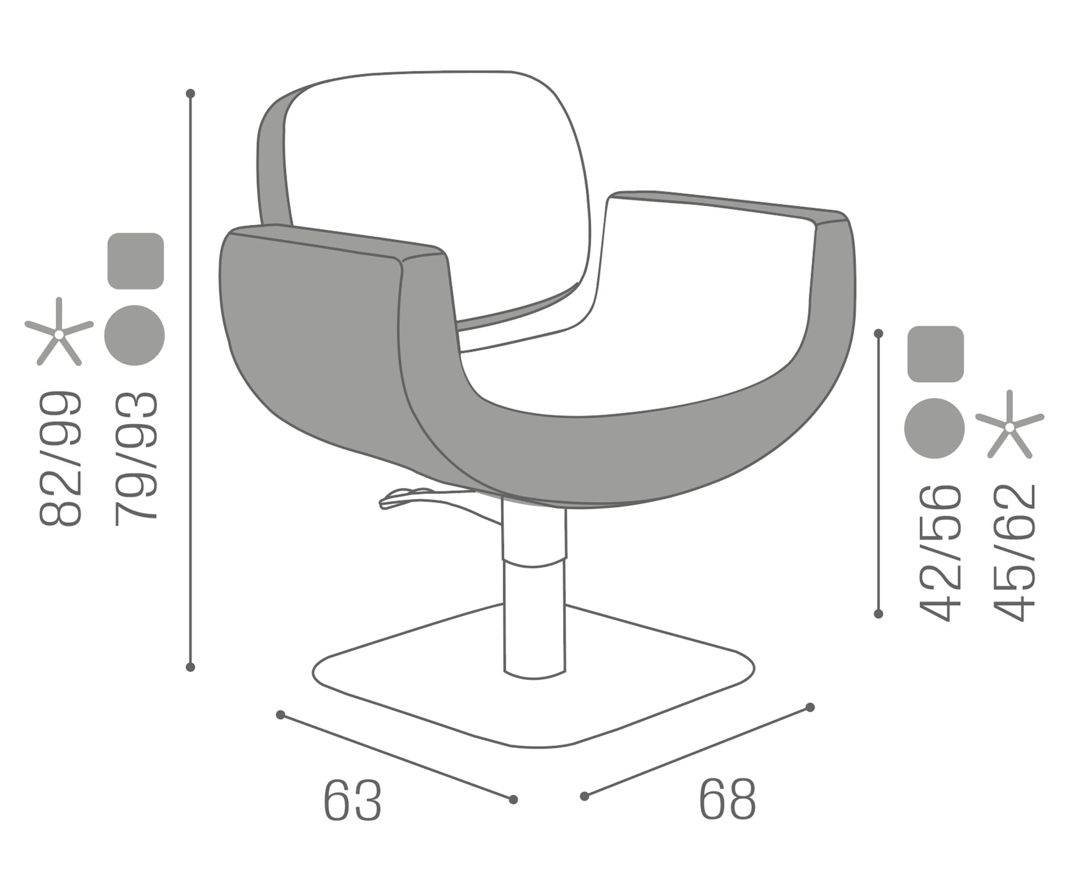 Maße: B 68 x T 63 x H 79/93 cm