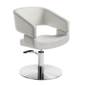Unser Angebot beinhaltet den Coiffeurstuhl „Vibe“ mit Kreuzfuß aus poliertem Aluminium, ausgestattet mit Gleitern und block. hydr. Pumpe, Sitz und Rückenschale gepolstert, Bezugsstoff Kunstleder nach Wahl