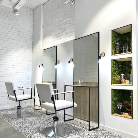 Der Friseurplatz „Dai“ von Takumi, erhältlich in 8 verschiedenen Ausführungen ohne Aufpreis inkl. Fönhalter.