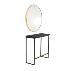 Der Spiegel – rund oder quadratisch- ist mit einem mit PVC- Rahmen in glänzendem Schwarz oder Gold versehen.