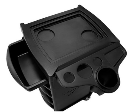 einem oberen Tablett mit mehreren Fächern zur Aufbewahrung der Arbeitswerkzeuge. 2 Föhnhalterungen im Lieferumfang enthalten.