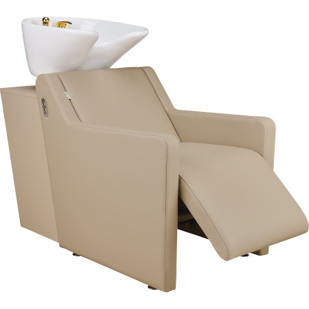 • Moderner Friseurstuhl mit Waschbecken, ergonomisch und komfortabel für Salon oder Spa Nutzung.