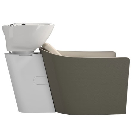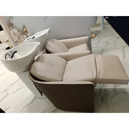 Die Waschanlage ist serienmäßig mit einer synchronisierten, elektrischen Rückenlehne und Beinstütze ausgestattet und sorgt damit per Handsender für die perfekte Sitz-/Liegeposition während der Haarwäsche.