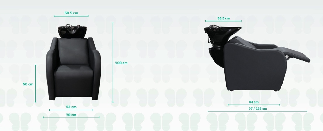 - Verschiedene Farbkombinationen: schwarze oder beige Polsterung, mit einer Auswahl an weißem oder schwarzem Becken, die zur Einrichtung Ihres Salons passen.