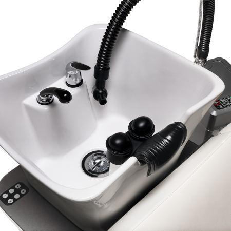 Eine Liege, die dank der perfekten Ergonomie der völlig flachen Liege dem Kunden höchsten Komfort und Entspannung bietet. Ideal für Head Spa-Behandlungen.