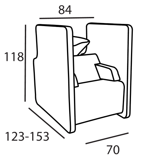 • B 70 x L 123-153 x H 118 cm