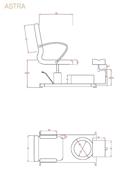 Die Höhe und Drehung vom Stuhl wird mittels hydraulischer Pumpe mit Blockierungssystem reguliert.