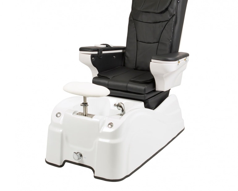 Fußpflegestuhl „Caln“ mit einem eleganten und komfortablen Design und einer hochwertigen weißen oder schwarzen PU-Polsterung.