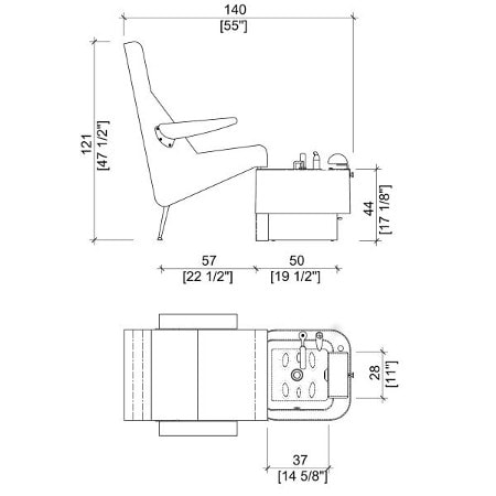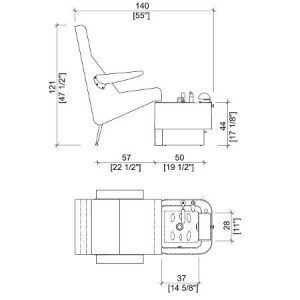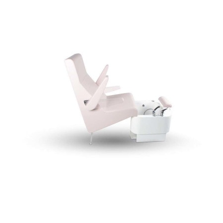 Diese Fußpflegestation ist mit einer festen Rückenlehne ausgestattet und die Lehne aus Kunstleder mit schwenkbaren Armlehnen versehen.