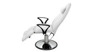 Die Höhe ist mittels einer blockierbaren Hydraulikpumpe verstellbar, die Rückenlehne und die zwei unabhängigen Fußstützen sind mittels Gasfeder regulierbar.