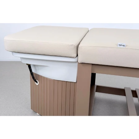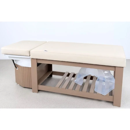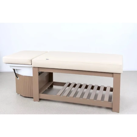 Die integrierte Waschfunktion ermöglicht das komfortable Ausspülen von Pflegeprodukten direkt im Liegen. Dadurch entstehen effiziente Behandlungsabläufe und ein durchgängiges Wellness-Erlebnis ohne Positionswechsel.