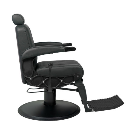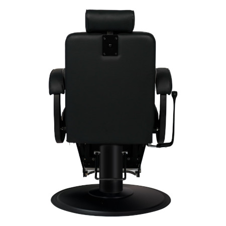 Der Herrenstuhl Mustang ist ein robuster Barberstuhl mit einem Rahmen aus mattschwarzem eingespritztem Aluminium und inneren Metallstruktur. Runde Bodenplatte mit mattschwarzer Oberfläche und hochwertiger Hydraulikpumpe, 360° drehbar. Sitz aus hochdichtem Schaumstoff mit Federn für maximalen Komfort und Haltbarkeit. Polsterbezug in schwarzem Kunstleder. Ideal für professionelle Salons, die Stil und Funktionalität vereinen.