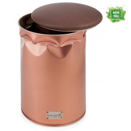 Hocker „Crash Puff“, aus recycelten und ökologischen Materialien mit Stauraum. Im Rahmen der Crash Line wird das Industriefass recycelt und zu einem neuen Möbelstück für Friseursalons umgebaut.