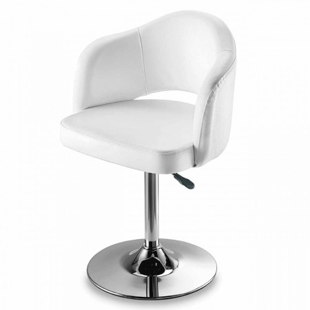 Bequemer Stuhl für den Maniküretisch mit einer weichen und umarmenden Rückenlehne, die mit Skai gepolstert ist. Dieser Stuhl mit Rädern ist ideal für den Bediener bei Schönheitsbehandlungen. Das Gestell aus Chromstahl mit Rädern und Fußstütze erleichtert die Bewegung und die Gasdruckfeder ermöglicht es, diesen Stuhl für verschiedene Dienstleistungen zu verwenden.