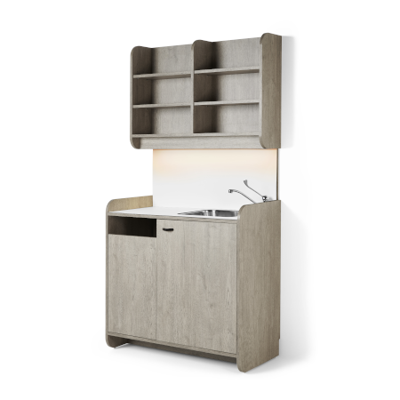 Modulares Labor mit klarem Design. Technische Station, die sich vollständig an die Bedürfnisse anpasst. Laminat nach Wahl und inklusive LED-Beleuchtung.