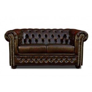 Der 2-Sitzer verfügt über die typisch gebogenen Armlehnen und die mit Knöpfen verzierten Lehnen, sowie den Nietenbesatz des Chesterfield Designs – mit ihm hält ein Hauch von Luxus, Klasse und Stil Einzug in Ihrem Wartebereich.
