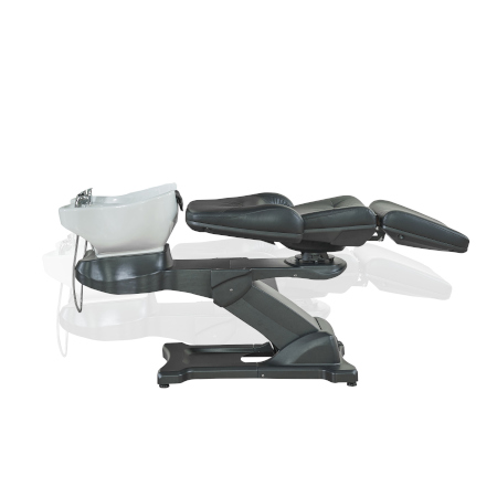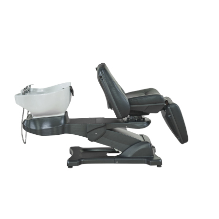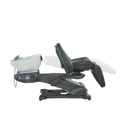 Die Waschliege „Satori“ mit Vielseitigkeit und Komfort. Ihr System ermöglicht die Einstellung der Höhe, der Neigung von Sitz und Fußstütze sowie die manuelle Drehung des Sitzes. Die Höhen- und Neigungsverstellung erfolgt über Foot Control und sorgt für Präzision und Komfort. Hergestellt mit einem inneren Metallrahmen, thermogeformter ABS-Verkleidung und mattschwarzer PU-Polsterung, bietet sie Widerstandsfähigkeit und einfache Wartung. Sie verfügt über ein ergonomisches Kissen mit Temperaturregelung und eine verstellbare Kopfstütze, die dem Benutzer maximalen Komfort bietet. Sie vereint Design, Technologie und Wohlbefinden und ist die ideale Wahl für Salons, die ein exklusives und hochwertiges Erlebnis suchen.