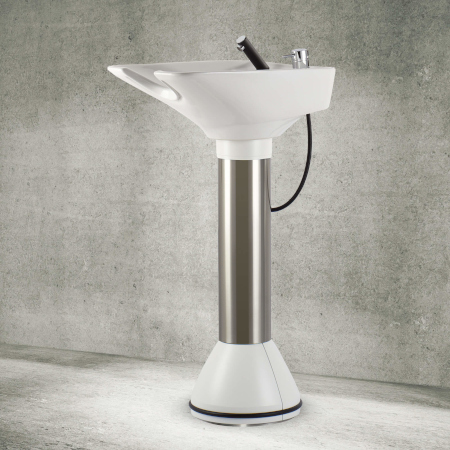 Die Standwaschsäule Contura Solo- die platzsparende Lösung mit edlem Design aus Edelstahl und lackiertem Kegelfuß in diversen Farben.
