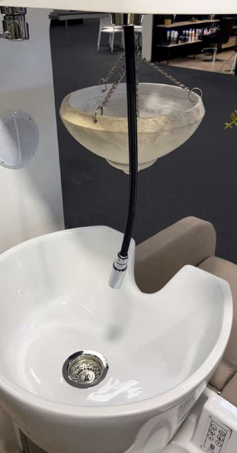 Flamingo Totem bietet Raumausnutzung und Komfort. Die multifunktionale Säule „Flamingo Totem“ integriert die Handbrause und die Mischbatterie direkt in ihre Gestaltung. Dadurch wird der Platz im Inneren des Waschbeckens vollständig freigegeben. Für Friseure bedeutet dies mehr Raum, um effizient und bequem zu arbeiten. Kunden erleben ein Höchstmaß an Komfort, da sie sich entspannt zurücklehnen können, ohne von überflüssigen Armaturen gestört zu werden.