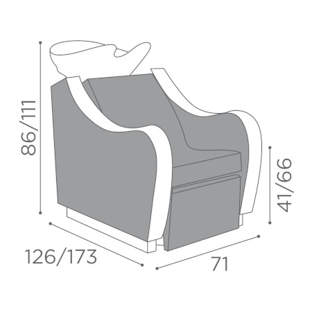 Maße: B 71 x L 126/173 x H 86 – 111 cm; Sitzhöhe: 41 – 66 cm