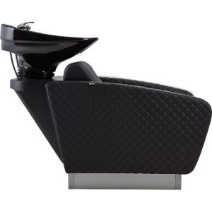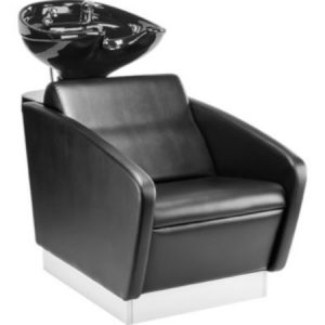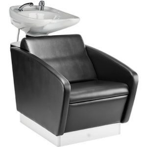 • Schwarzer Waschsessel, ideal für Salons. Ergonomisches Design für Komfort und Stil.