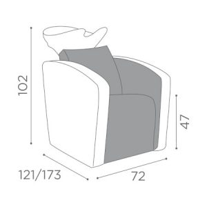 Maße: B 72 x T 121/173 x H 102 cm